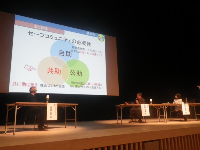 セーフコミュニティ認証2周年を記念し、「日本市民安全学会」と共催でフォーラムを開催しました。安全・安心をテーマとした映画上映のほか、安全・安心に関わる各分野の取り組みについて報告しました。当日は、安全・安心に関わる各分野の専門家のほか、関係者約250人の出席がありました。概要は、以下のチラシ、大会抄録集をご覧ください。